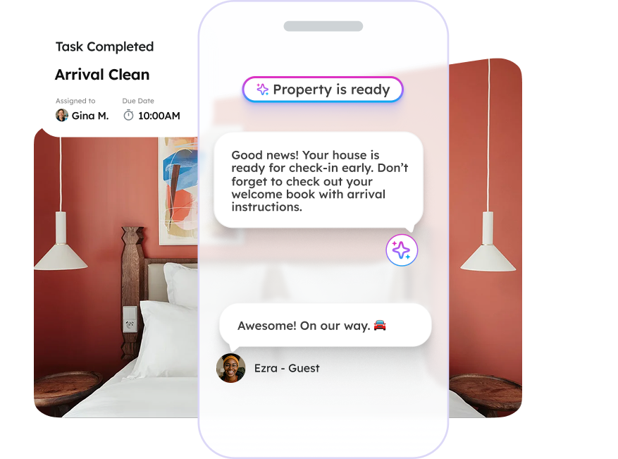 Deliver personalized guest communication at scale with AI that sends the right messages at the right time, plus a digital welcome book with all essential property information.