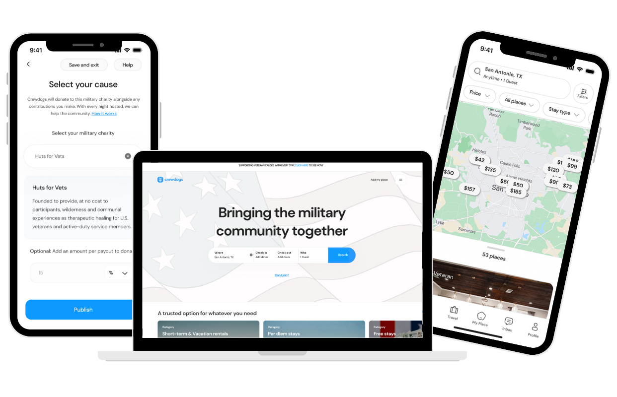Crewdogs is the largest veteran-led booking platform for service members, veterans, and military families. You set the rules and stay in control. We verify guests and help you host travelers you can trust.