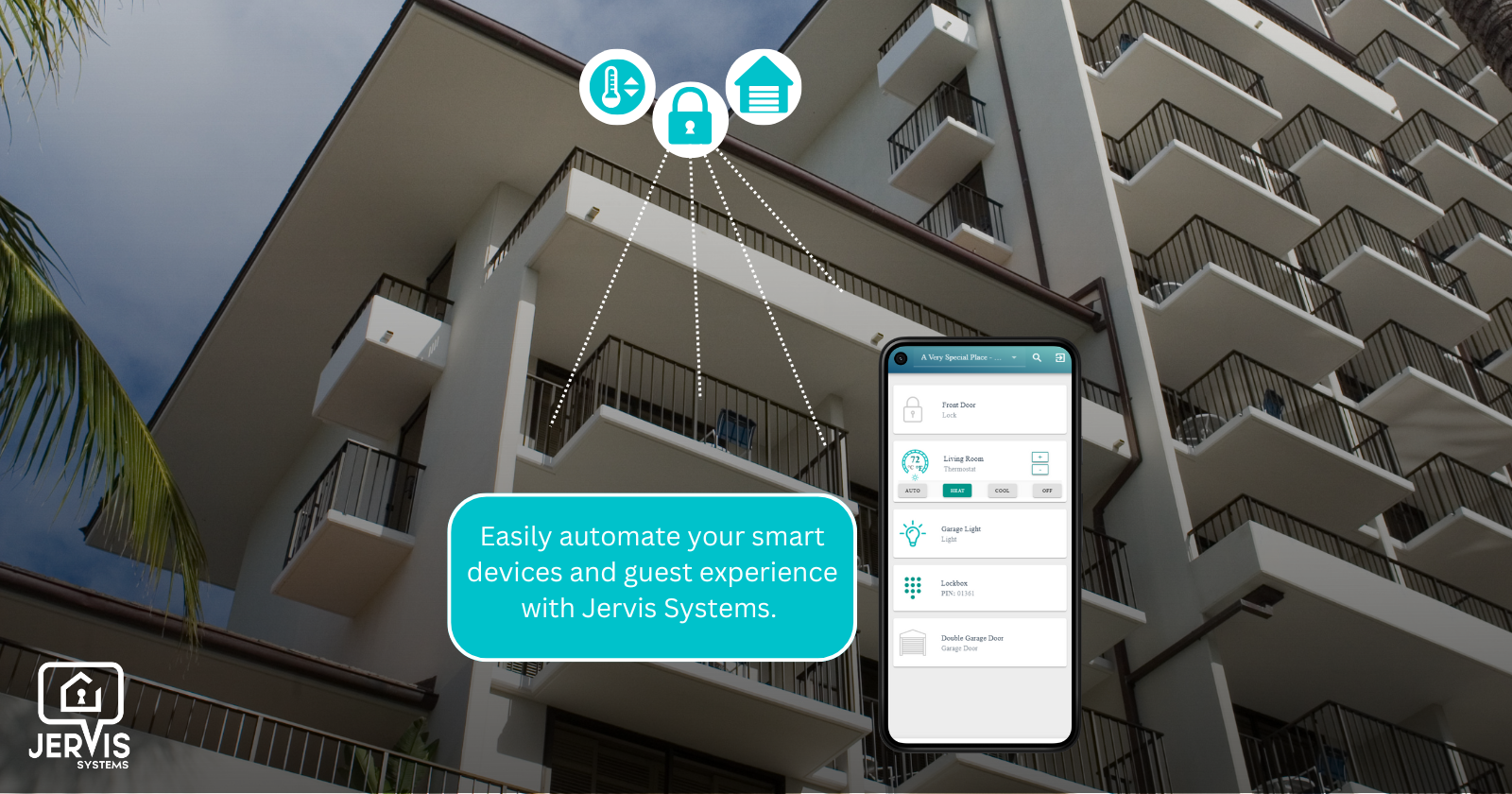 Jervis Systems is a smart access and automation platform that allows property owners and managers to automate their short-term rentals, vacation homes, and boutique hotels from anywhere in the world. Create five-star guest experiences while avoiding the technical hassle and headache of managing multiple apps, platforms, and smart home devices.