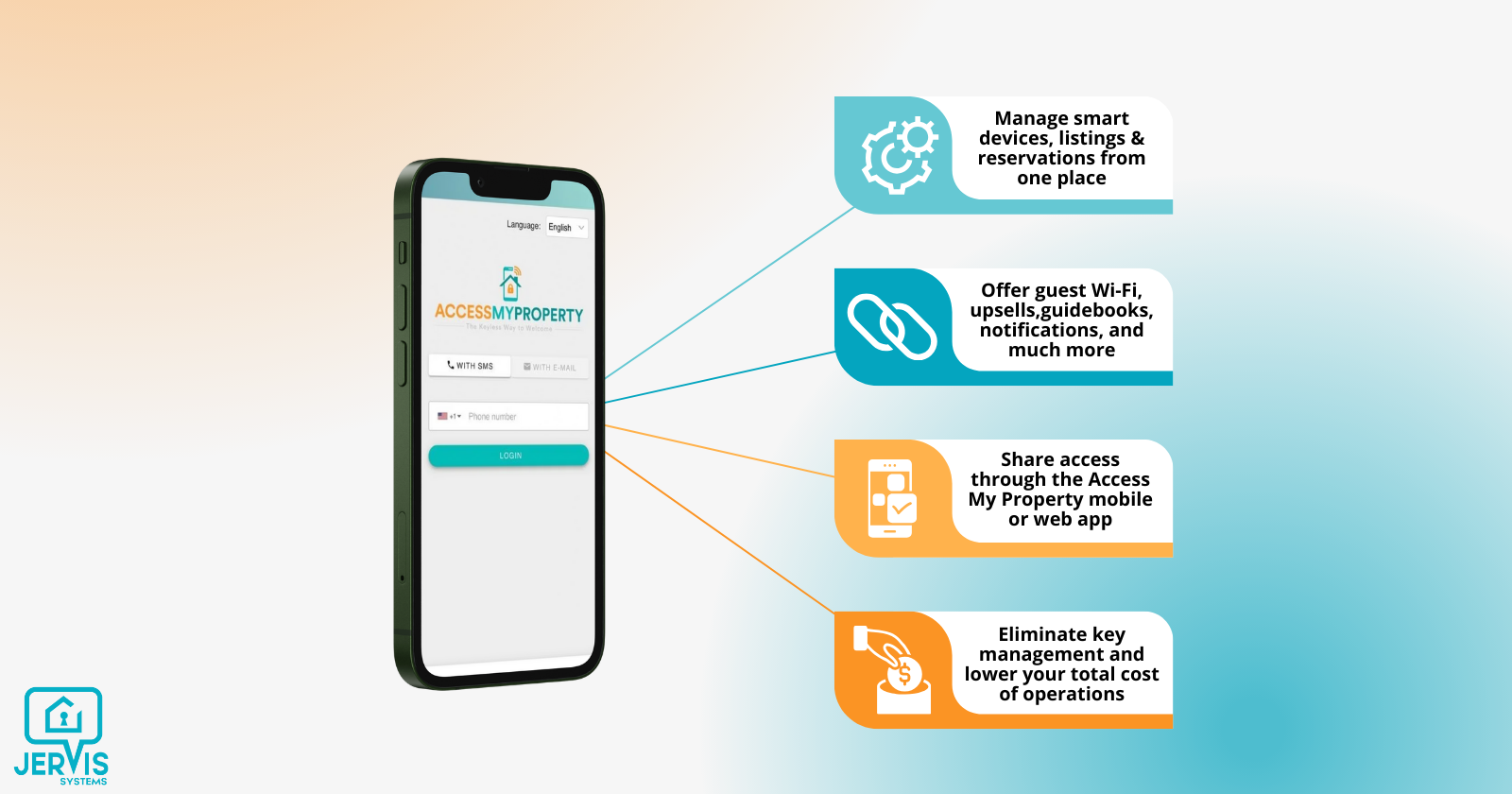 Jervis simplifies your property tech stack by connecting top-rated devices and property management tools in one place. Automate smart device settings, set up guest Wi-Fi, create guidebooks, offer upsell capabilities, brand your own web app, and more. Jervis Systems makes property management simple and secure, allowing you to focus on growing your business and creating a memorable stay for every guest.