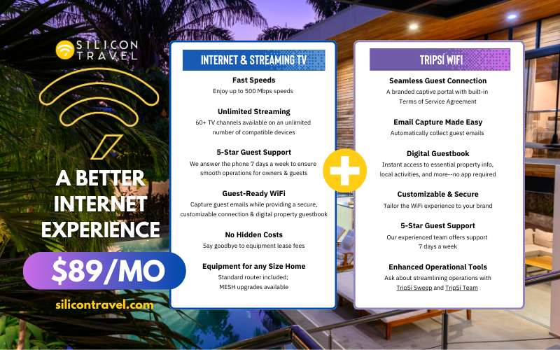 Silicon Travel provides high-speed Internet, managed WiFi, streaming TV, and VOIP phone services tailored for vacation rentals, homeowners, and property managers.