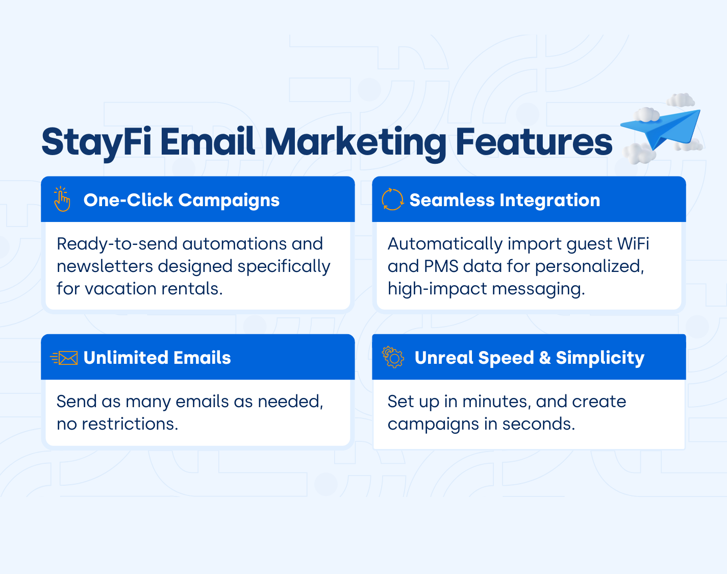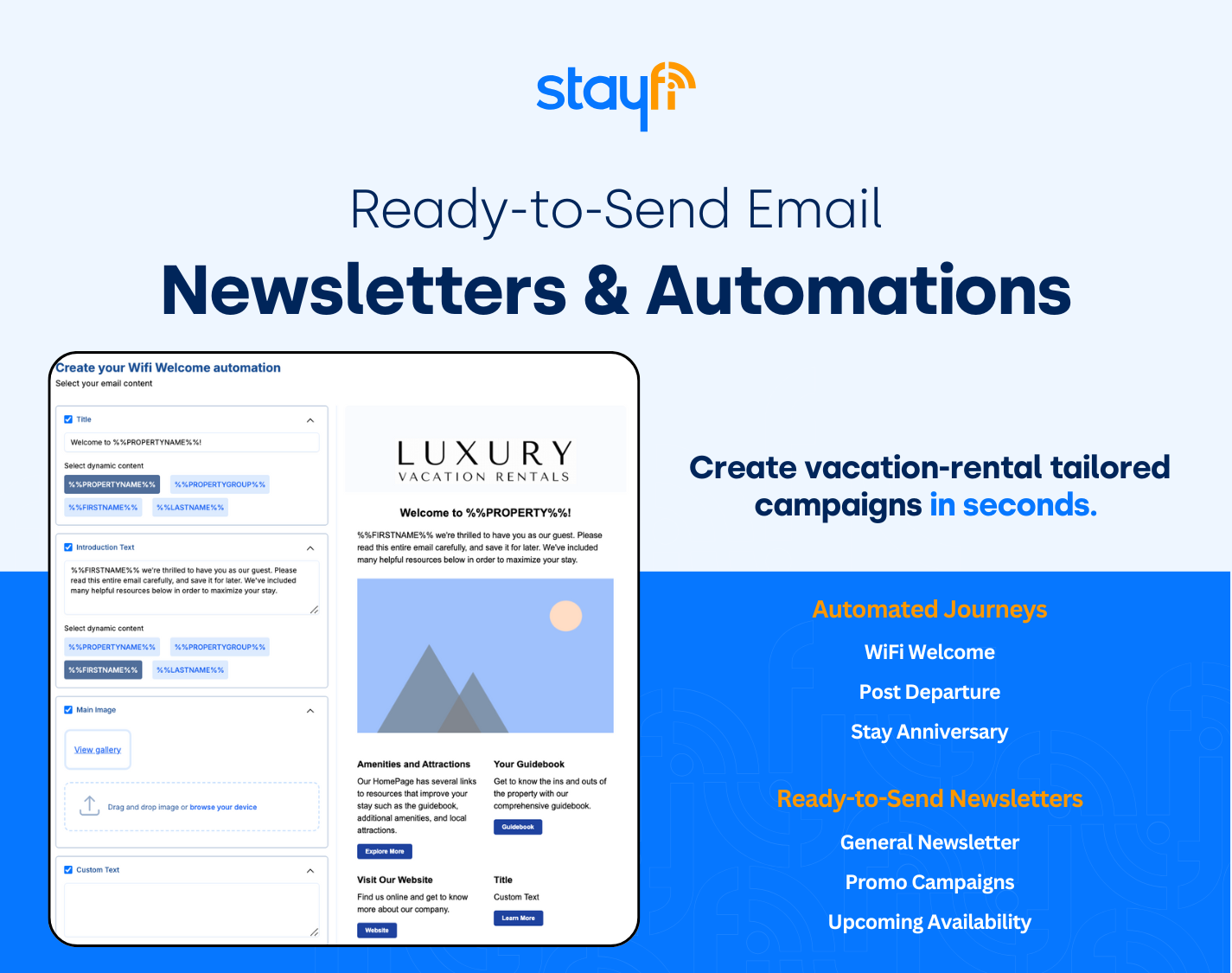 StayFi turns guest WiFi into a data and retention engine, making it easier to grow direct bookings and long-term guest relationships.